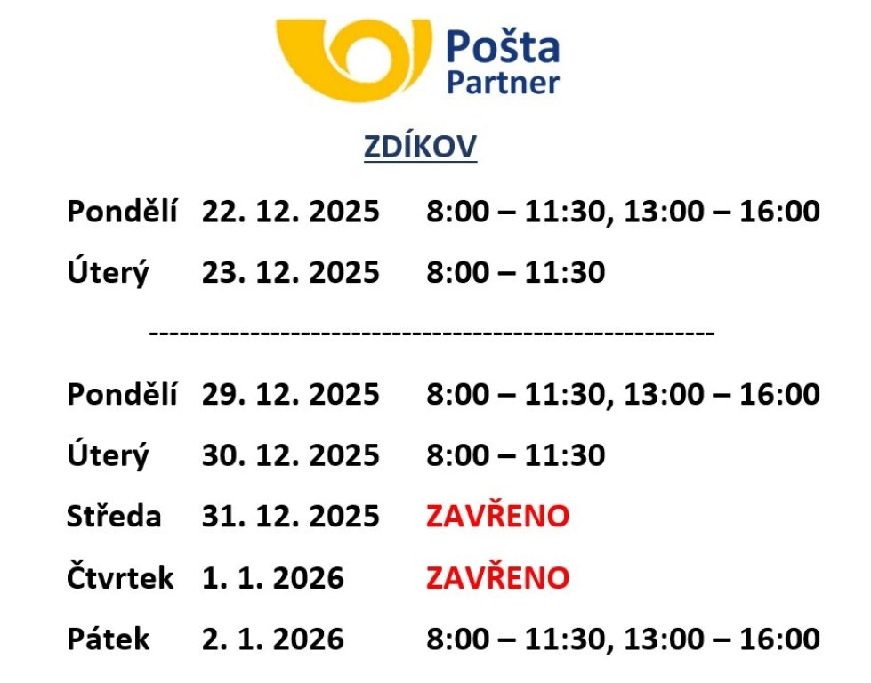 Pošta: Hodiny pro veřejnost ve vánočním a novoročním období